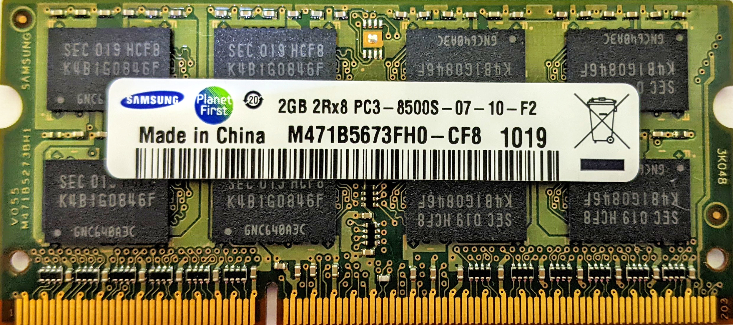 Оперативная память Samsung 2Gb M471B5673FH0-CF8 2GB 2Rx8 PC3-8500S-07-10-F2 ddr3 2 ГБ БУ