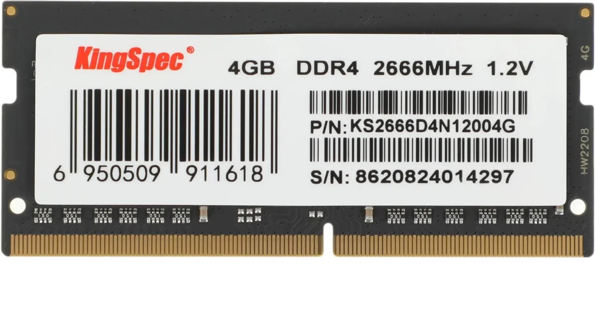 Оперативная память KINGSPEC KS2666D4N12004G DDR4 - 1x 4ГБ 2666МГц, для ноутбуков (SO-DIMM), Ret