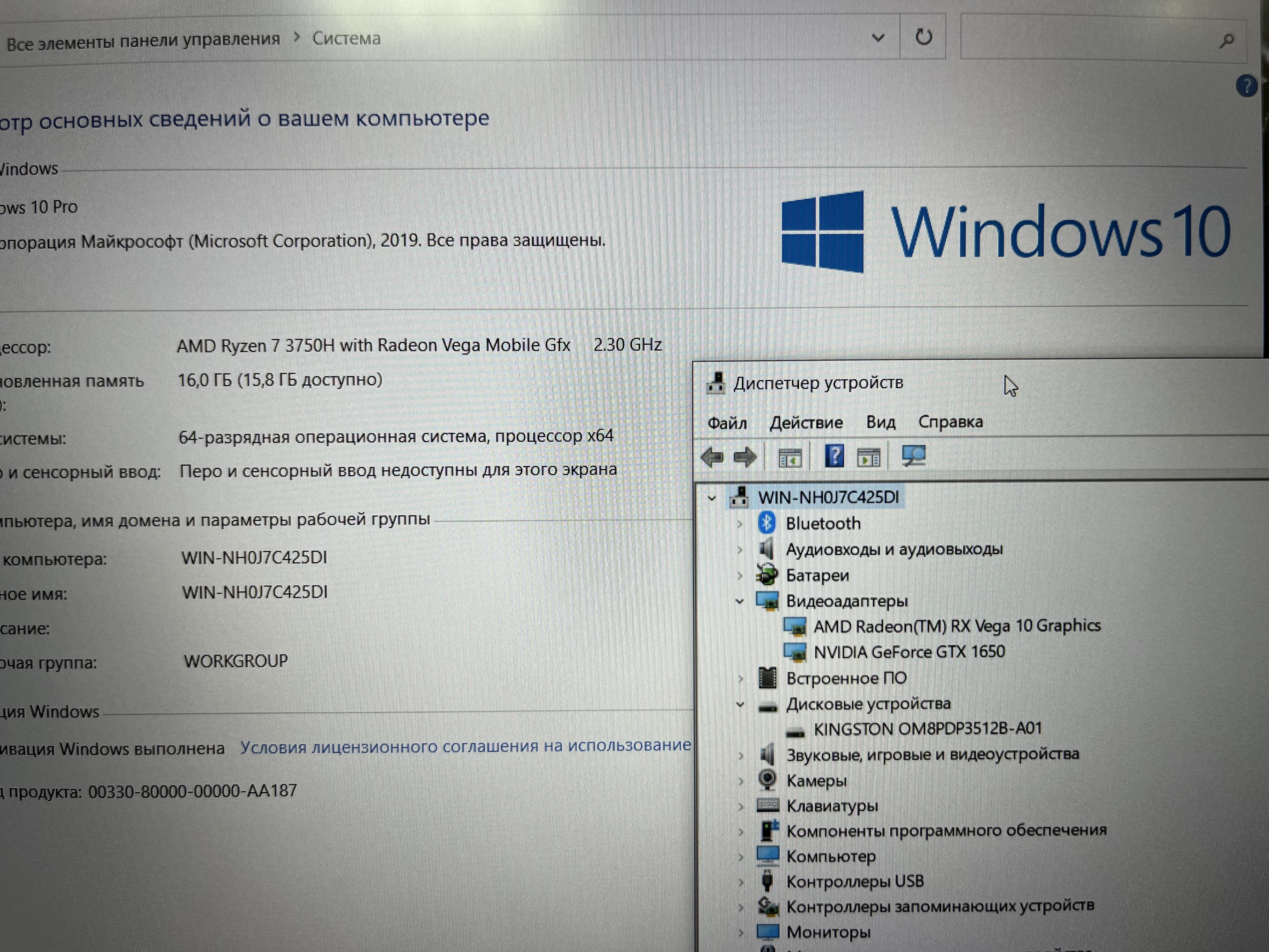 Б\У 15,6' 1920x1080 IPS 120Hz / Ryzen 7 3750H 4000 MHz/ DDR4 8 ГБ/ GeForce GTX 1650 4 ГБ/ SSD 512 ГБ / Windows 10