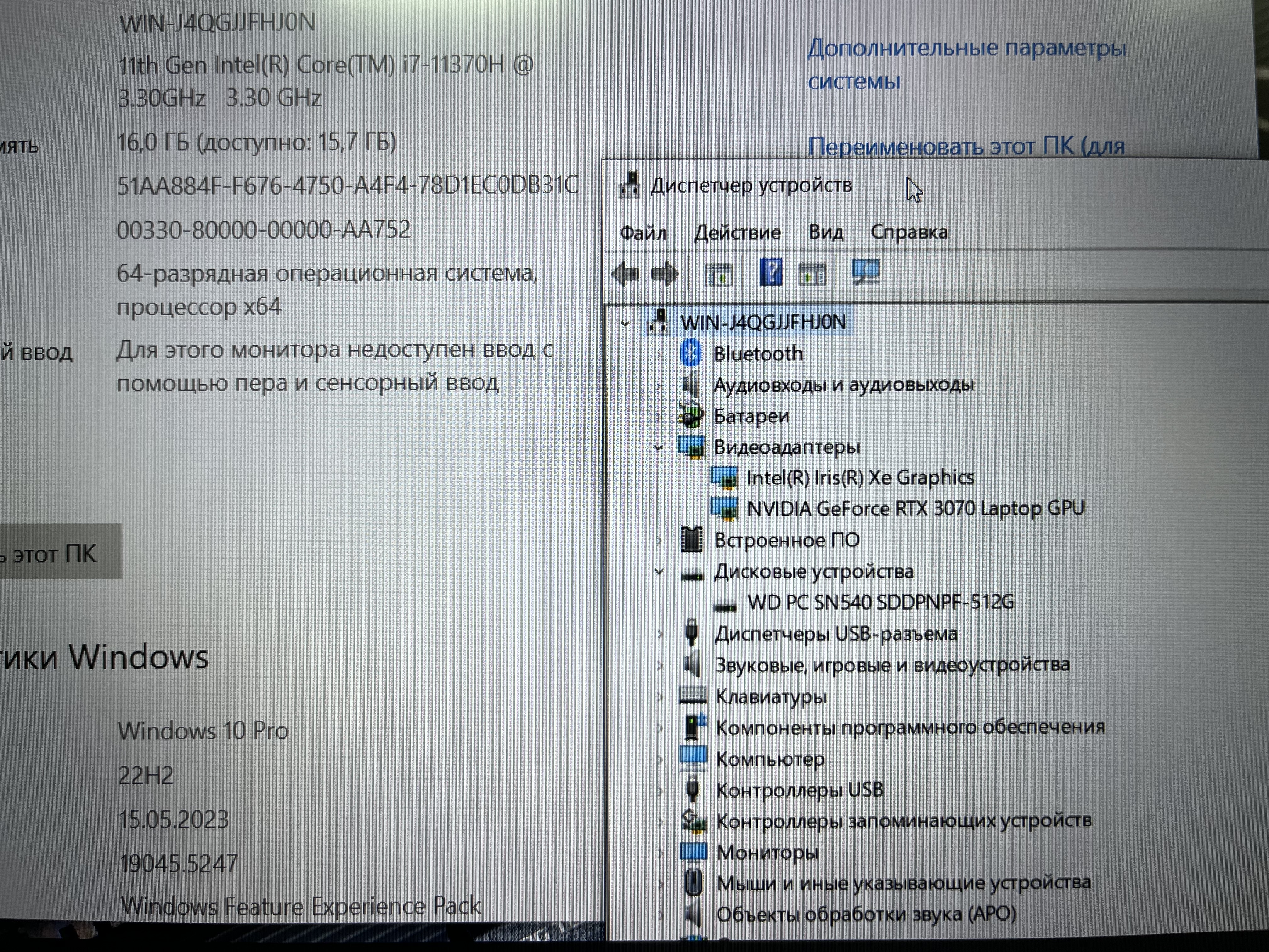 15.6" 1920 х 1080 IPS 144Hz \ Intel Core i7 11370H 4800 MHz \ DDR4 16 ГБ \ nVidia GeForce RTX 3070 8Гб \ SSD 512 ГБ \ Windows 10