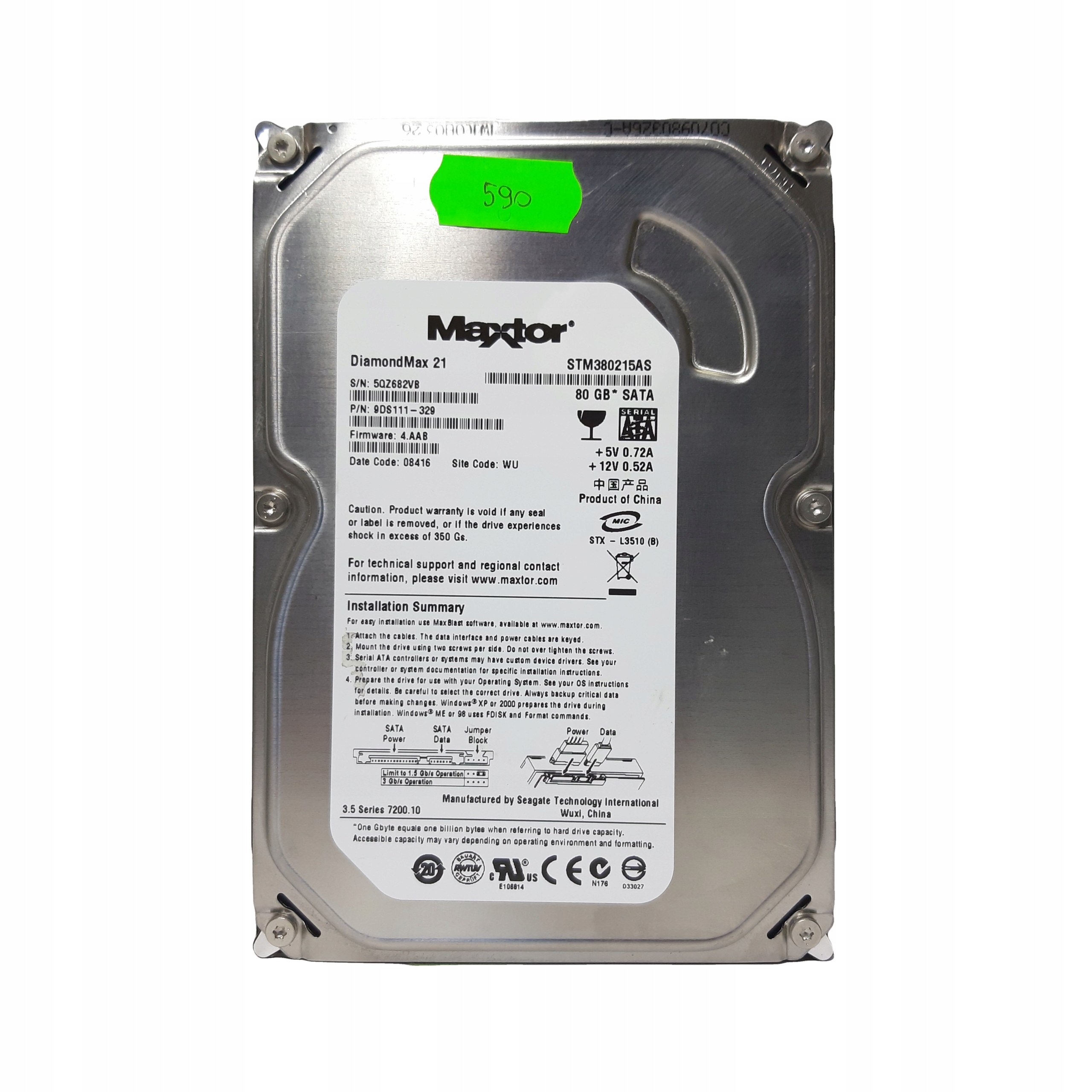 DiamondMax 21, 3.5", SATA 3Gb/s, 80 Гб, 7200 rpm, буфер 2 Мб