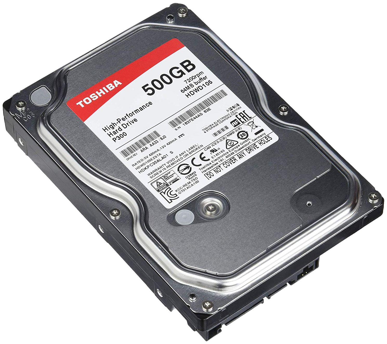 Объем жесткого диска Toshiba P300 [HDWD105UZSVA] составляет целых 500 Гб, что позволит разместить на нем невероятное количество самой разнообразной информации: от многотомных библиотек до коллекции высококачественных фильмов. Объем кэш-памяти устройства также внушителен и равен 64 Мб. Устройство может похвастаться беспрецедентной скоростью передачи информации, которая составляет 196 Мбайт в секунду. Аппарат поддерживает интерфейс SATA III с пропускной способностью в 6 Гбит в секунду. Существенным плюсом жесткого диска является крайне низкий уровень шума в процессе работы.